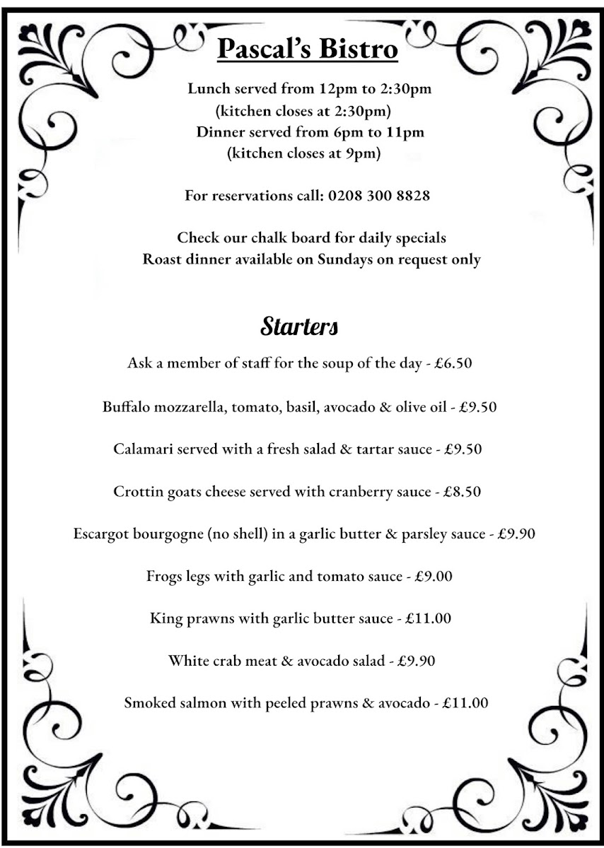 In conclusion, Pascal Bistro’s menu offers an excellent introduction (or tribute) to classic French cuisine, with attention to authenticity, atmosphere, and detail. Whether you're a local resident or visiting Sidcup, this bistro is well worth a visit.